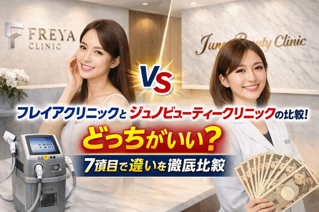 この記事では、フレイアクリニックとジュノビューティークリニックの違いについて、公式に公開されている料金・プラン・サービス内容をもとに、7つの視点から徹底的に比較していきます。