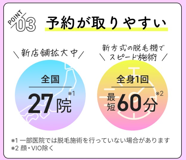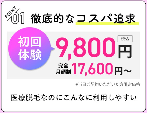 「最短で高い脱毛効果を実感できる医療脱毛」をコンセプトに、最新の脱毛機器を導入しながら、リーズナブルな料金設定と丁寧なカウンセリングを両立させています。