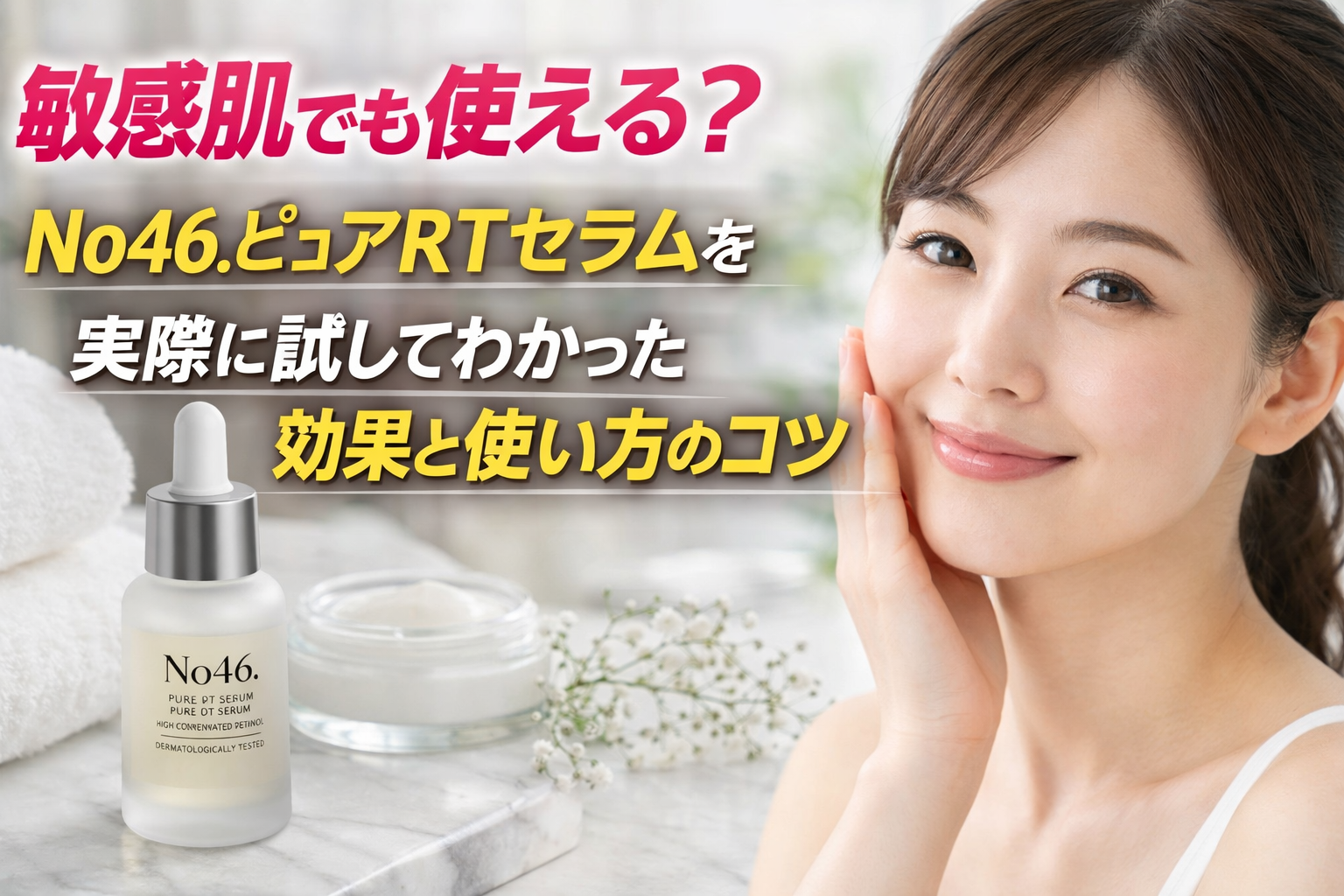 しかし、No46.ピュアRTセラムは「敏感肌でも使える純粋レチノール美容液」としても注目を集めています。